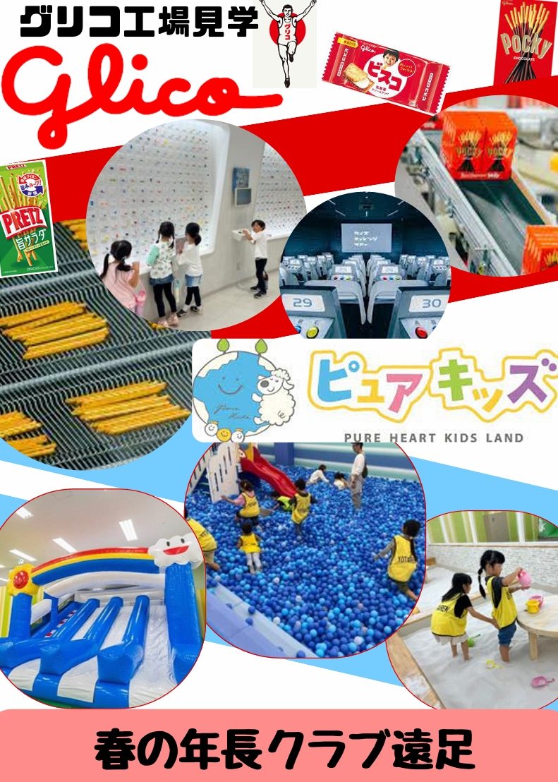 この度、春の年長クラブ遠足【グリコピアイースト工場見学&ピュアキッズ】を開催致します。
